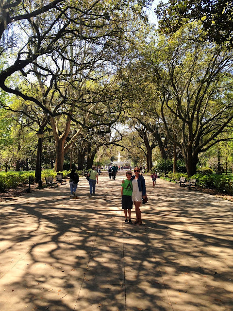 Not being ones who like to pay for tours we decided to set off on foot and see the city. We started at Forsyth Park...the weather was a perfect 70 degrees, making the stroll through beautiful live oak trees so relaxing.